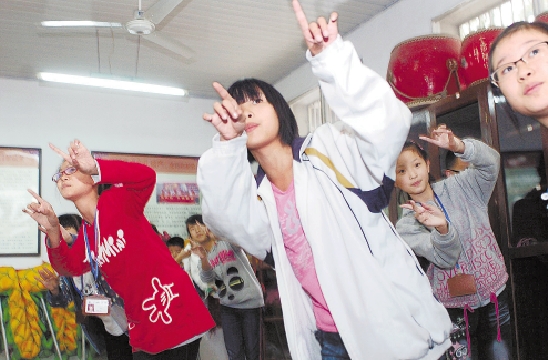 10月18日,龙游县湖镇初级中学白鸽婺剧社的学生聚在一起练功。湖镇初中成立婺剧社团,请当地的婺剧名师辅导有兴趣的学生学唱,让学生感受身边的传统文化。