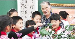 10月18日,省级硖石灯彩传承人宋振华带着他的30件硖石灯彩来到海宁袁花镇中心小学,给学生上了一堂灯彩课。