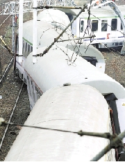 10月19日,工作人员在波兰黑别发生出轨事故的列车旁工作。当天,连接波兰首都华沙和奥地利首都维也纳的列车在车站发生事故,列车6节车厢中的5节出轨,出轨原因尚未查明,目前尚无事故造成严重人员伤亡的报告。 新华社发