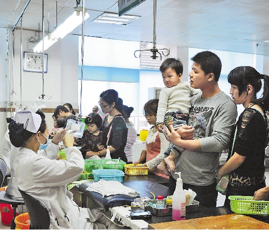 输液室里挤满了人。俞佳友 摄