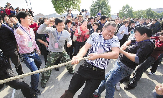 10月23日,缙云县新建镇举行全民运动会,全镇近600余人组成32个代表队分别进行拔河、挑粮接力等比赛。