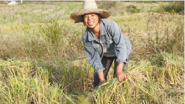 鲁水莲说,割稻是农村最热闹的农事活动。江晨 摄