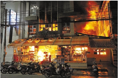 10月23日,在泰国南部那拉提瓦府,一处超市遭炸弹袭击引发火灾。泰国警方24日说,至少7人已经在泰国南部疑似穆斯林武装人员发动的袭击中丧生。自2004年初以来,泰国南部分离主义武装人员活动频繁,也拉、那拉提瓦和北大年三府以及宋卡府部分地区经常发生爆炸、枪击、绑架等暴力活动。 新华社发 |