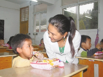 孩子吃着“浙商妈妈”邱丽霞送来的蛋糕。叶圣义 摄