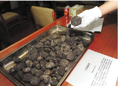 10月25日,“海洋六号”科学考察船顺利完成中国大洋第23次科考任务,凯旋归来,完成了我国载人潜水器“蛟龙号”5000米级海上试验警戒与保障、深潜试验区海底地形地貌勘探测量和多金属结核区域的生物调查与地质取样等任务。图为“海洋六号”科考船展示的从5100米海区采集的多金属结核。 新华社发 |