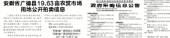 用地性质:商业服务(农贸市场用地),容积率≤1.0,建筑密度≤45%,绿地率≥15%,起始价100万元/亩,保证金400万元,拍卖时间:2011年11月15日10时。