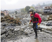 10月26日,在意大利拉斯佩齐亚附近,一名营救人员行走在暴风雨过后的居民区内。据称,此次暴风雨在意大利中、北部引起大面积的洪水和泥石流,造成5人死亡,8人失踪。 新华社发
