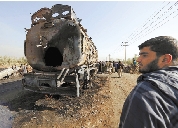 这是10月26日在阿富汗东部帕尔万省拍摄的油罐车爆炸现场。阿富汗官员26日证实,一辆油罐车25日晚在东部帕尔万省发生爆炸,造成至少3人死亡、40多人受伤。 新华社发