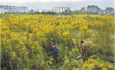 一枝黄花繁殖能力极强,一个6株的小群体,8年后可生长为一个1400余株的大群体。而如今,砍到、粉碎后的一枝黄花,可用于培植蘑菇,这对保护生态、利用资源是个极大利好。