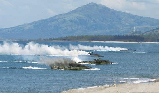 10月23日,美菲在菲律宾进行为期两周的军演,图为军演中使用的两栖作战工具。 视野网供图