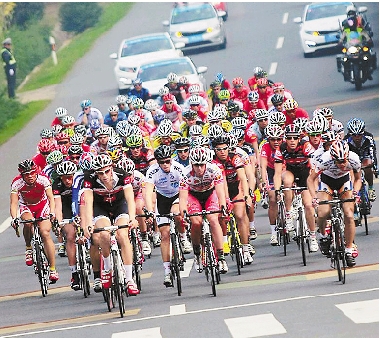 | 11月1日,2011环太湖国际公路自行车赛在江苏省无锡市开赛,共有来自11个国家和地区的20支车队的100余名运动员参赛。本次赛事为国际自行车联盟(UCI)2.2级多日赛,比赛分为5个赛段,总里程近800公里。 新华社发 |
