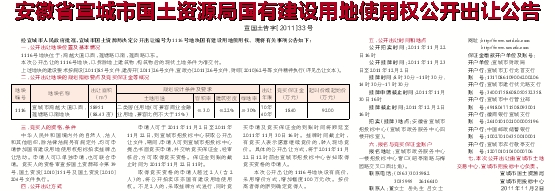 安徽省宣城市国土资源局国有建设用地使用权公开出让公告