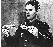 图为苏联航天员沙塔洛夫在示意“联盟”5号与“联盟”4号的对接过程。