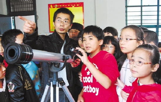 昨日,建德市新安江第一小学科技社团老师向学生们讲解望远镜等航天知识,培养学生对航天科技知识的兴趣。 宁文武 胡锦洪 摄