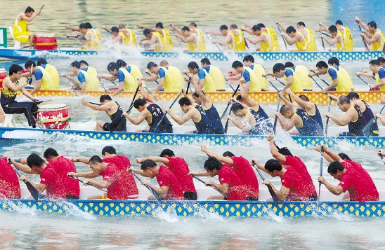 昨日,2011年中国龙舟公开赛年度总决赛在杭州运河拱宸桥至轻纺桥段拉开战幕。 吴海平 摄