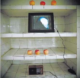 苹果、显示器、影像,在策展人的组合下,独特的光影气息扑面而来。