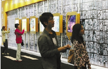 11月6日,观众在首届中国(杭州)国际漫画展上细细品味漫画精品。2387件原创漫画,人人可以免费看个够。 本报记者 邵全海 摄