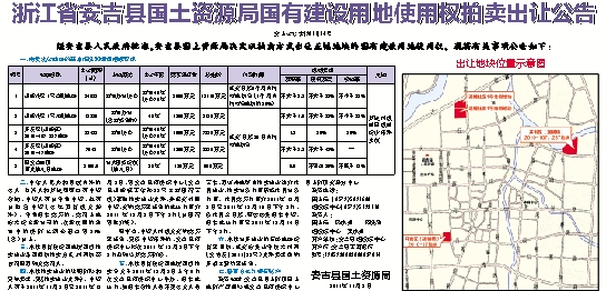 浙江省安吉县国土资源局国有建设用地使用权拍卖出让公告