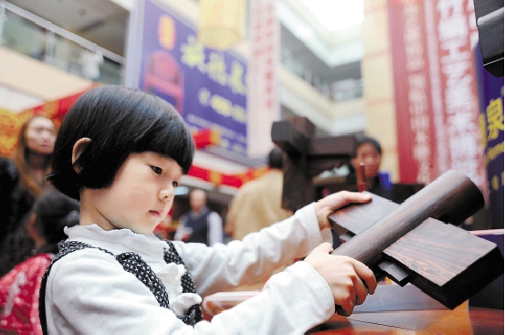 | 精巧的榫卯结构深深地吸引了这名小观众。11月8日,在东阳木雕竹编工艺美术博览会上,几位木工师傅在不到5分钟的时间里,将一件红木家具当场拆开,又组装回去,没用一个钉子,一滴胶水,家具严丝合缝,让观众直观地感受到榫卯结构传统工艺的魅力。 东阳日报记者 冯丁 摄 |