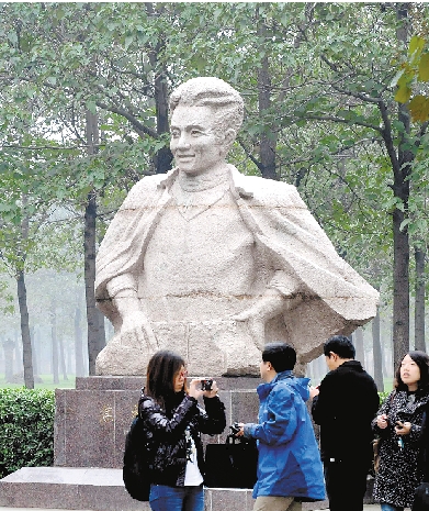 11月8日,部分编辑记者代表在兰考焦裕禄当年种植泡桐树的纪念地参观。 新华社记者 朱祥 摄