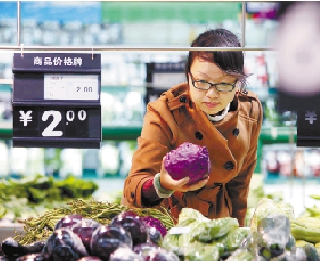 消费者在北京市的一家超市里选购蔬菜。 新华社发