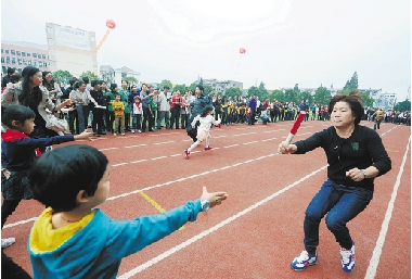 日前,台州市路桥小学举行了以“阳光运动”为主题的校园运动会。由300多位家长、老师和小学生组成的代表队,在亲子接力、趣味游戏竞赛等项目上争冠,充分展示校园阳光、和谐,蓬勃向上的风貌。 王保初 摄