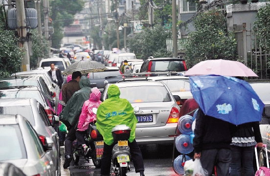 每天上下班高峰,杭州一些小区道路上总会发生拥堵。 记者 杨晓轩 摄