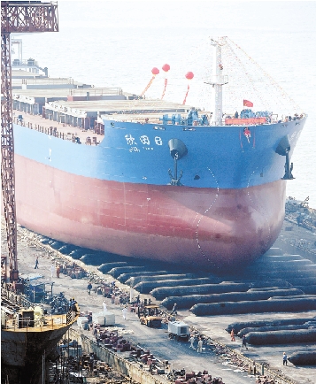 11月11日,乐清市黄华码头,由欣顺集团欣田船业建造的5.5万吨散货船“欣田6号”顺利下水。该船总长199.98米,总造价约两亿元。