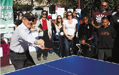李孟贤在美国旧金山“庆祝中美乒乓外交40周年全市乒乓球大赛”中。