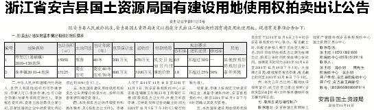 浙江省安吉县国土资源局国有建设用地使用权拍卖出让公告