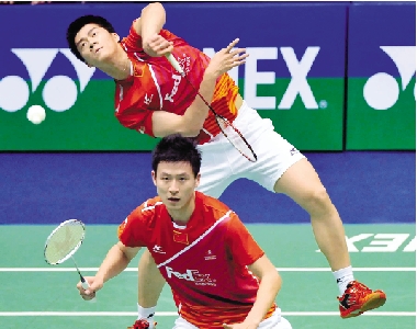 11月17日,中国队选手蔡赟(前)/付海峰在比赛中。当日,在香港举行的2011香港公开羽毛球锦标赛男子双打比赛中,中国队选手蔡赟/付海峰以2比0战胜中华台北队选手方介民/李胜木,晋级下一轮。 新华社发