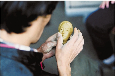 海门老街首届文化节11月20日降下帷幕。当日,海门老街人来人往、热闹非凡。许多家长带着孩子零距离接触泥塑、烙画、吹糖人等非物质文化遗产。图为艺人表演泥塑绝活。 徐国友 摄