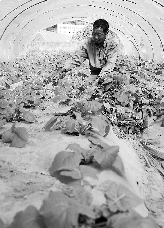 乐清虹桥镇严宅村土地实行“三分三改”后,不少村民承包了土地。图为一村民在菜园里劳作。郑剑佩 摄