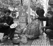 11月17日一大早,磐安县新渥镇农民杨大友等三人在本县一深山冷坞里,花了两个多小时成功挖出一个长98厘米,重达16公斤的“地动虎”蜂窝,卖了3000多元。 孔德宾 摄
