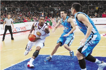 11月25日,CBA联赛第3轮。浙江稠州男篮主场以113比98战胜福建队,取得两连胜。JR史密斯(左二)拿下20分4个篮板3次助攻。而浙江广厦男篮则在客场以89比97不敌山东队。 陈熙春 潘良干 摄