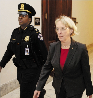 11月21日,在美国首都华盛顿的国会山,美国国会削减赤字特别委员会(“超级委员会”)民主党参议员帕蒂·默里(右)在与该委员会民主与共和两党代表开完会后离开。 新华社发