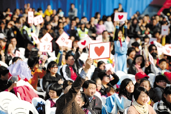 昨日,“2011彩虹计划——大型公益助学结对活动”在杭州吴山广场举行,吸引众多市民热情参与。当天收到爱心捐款158万元。 本报记者 梁臻 摄