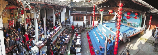 赛诗会现场搭起了古戏台。