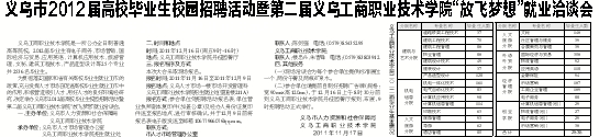 义乌市2012届高校毕业生校园招聘活动暨第二届义乌工商职业技术学院“放飞梦想”就业洽谈会