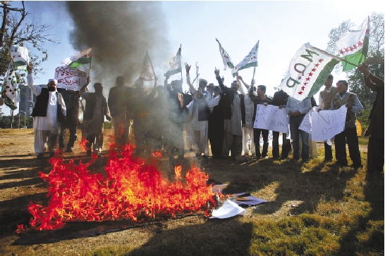 11月29日,在巴基斯坦伊斯兰堡,民众举行抗议北约示威活动。 新华社发