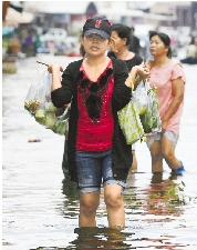 11月29日,在泰国紧邻曼谷北部的暧武里府,一名女子手拿食物在洪水中行进。世界银行一名经济学家29日说,泰国遭遇历史罕见的特大洪水灾害,导致经济遭到重创,重建费用预计将达到241亿美元。 新华社发