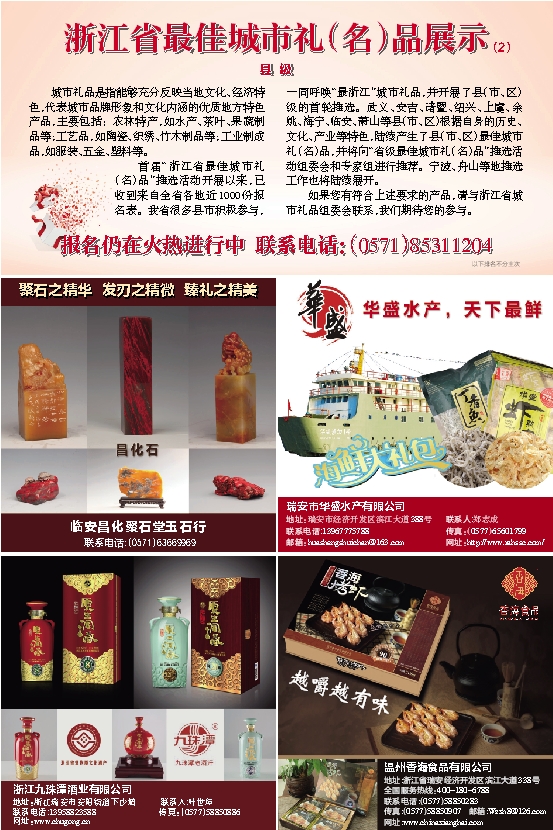 如果您有符合上述要求的产品,请与浙江省城市礼品组委会联系,我们期待您的参与。