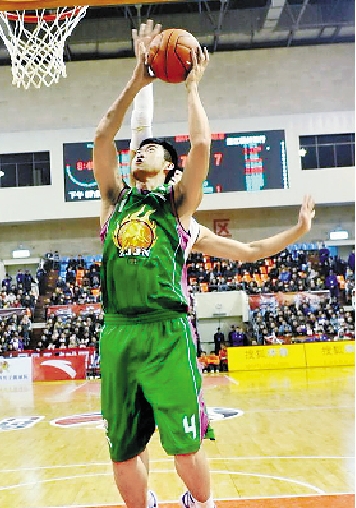 图为浙江稠州银行男篮丁锦辉在进攻中。