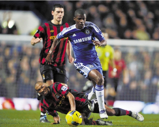 12月12日,切尔西队球员拉米雷斯(右)在比赛中带球突破曼城队球员克利希(下)的防守。当日,在2011-2012赛季英格兰足球超级联赛第15轮比赛中,切尔西队主场以2比1战胜曼城队。 新华社发