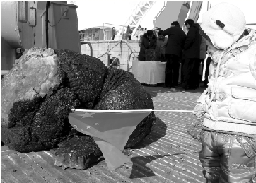 ”大洋一号”科考船上,一名前来参观的小朋友被从大洋中挖掘出来的岩石标本吸引。 新华社发
