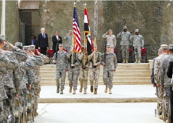 12月15日,美国国防部长帕内塔和美国驻伊拉克大使詹姆斯·杰弗里在巴格达出席驻伊美军任务结束仪式。 新华社发