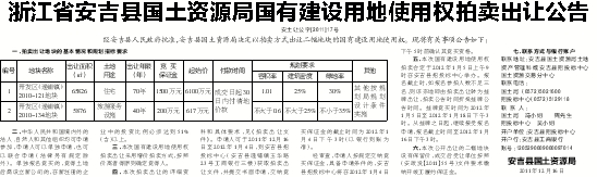 浙江省安吉县国土资源局国有建设用地使用权拍卖出让公告