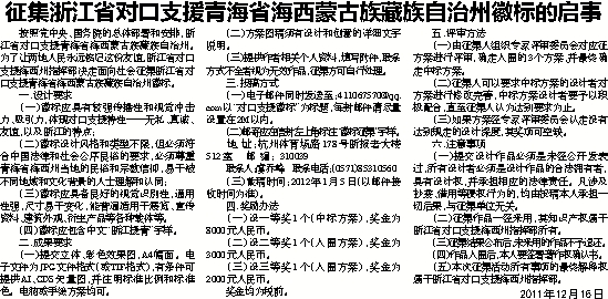 征集浙江省对口支援青海省海西蒙古族藏族自治州徽标的启事