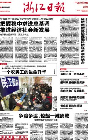 本报杭州12月15日讯 (记者 应建勇) 省委副书记、代省长夏宝龙今天上午在浙江大学调研科研创新工作时强调,要深刻领会和贯彻落实中央经济工作会议精神,紧紧抓住科技与经济紧密结合这个根本问题,坚持创新驱动、产学研结合,加快建立和完善以企业为主体的区域科技创新体系,着力提高自主创新能力和产业核心竞争力,不断增强科技对浙江经济社会发展的支撑引领作用。
