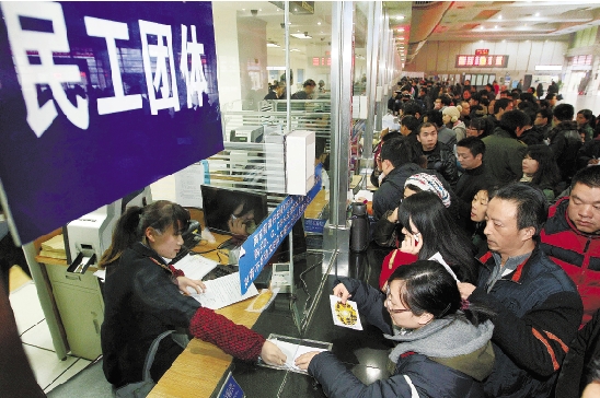 昨日,杭州城站火车站开设1号 民工团体窗口,受理预订1月8日至15日的返乡团体车票以及1月25日至2月16日返程车票。